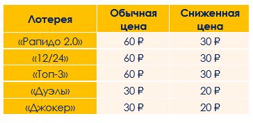 Вы этого ждали! Снижаем цены в быстрых лотереях: теперь билеты от 20 рублей. Выигрывайте 15 000 000 рублей каждые 15 минут. Все билеты по сниженным ценам собрали для вас в пакете «Чёрная пятница». Самое время испытать удачу. Выигрывайте, пока выгодно!