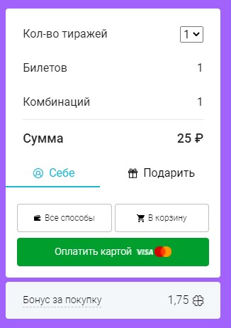 2. Окно для оплаты и выбора количества тиражей появится после того, как вы выберите числа.