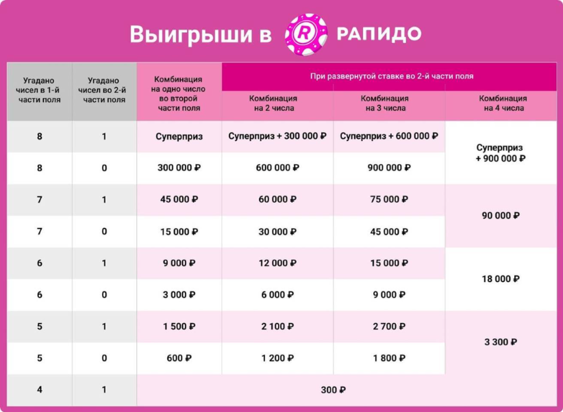 Стоимость билетов лотереи «Рапидо» на время специального предложения — от 300 рублей.