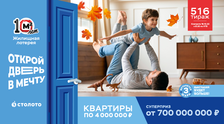 Разыгрываем 700 000 000 ₽, квартиры по 4 000 000 ₽ и множество денежных призов в «Жилищной лотерее»