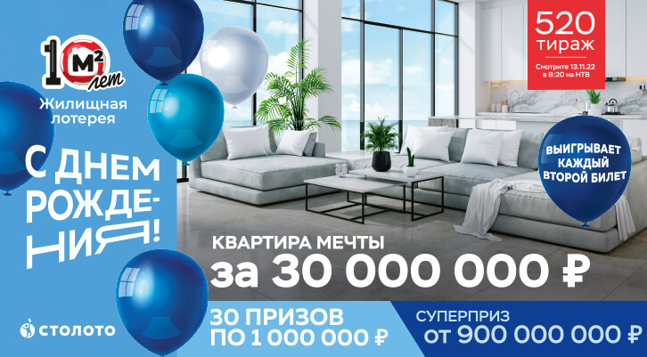 К юбилею «Жилищной лотереи»: суперприз 900 000 000 ₽, квартира за 30 000 000 ₽ и призы по 1 000 000 ₽