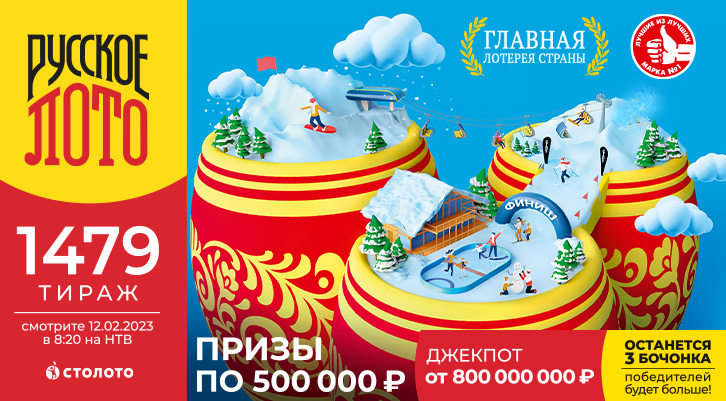 Разыгрываем Джекпот 800 000 000 ₽ и призы по 500 000 ₽ в «Русском лото»