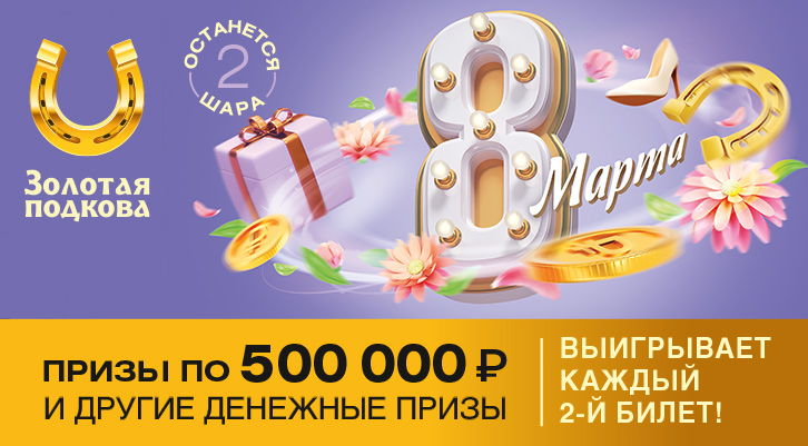 Разыгрываем суперприз от 10 000 000 ₽ и призы по 500 000 ₽ в честь 8 Марта в «Золотой подкове»!
