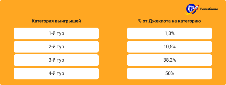 Накопленный Джекпот будет распределён по категориям следующим образом: