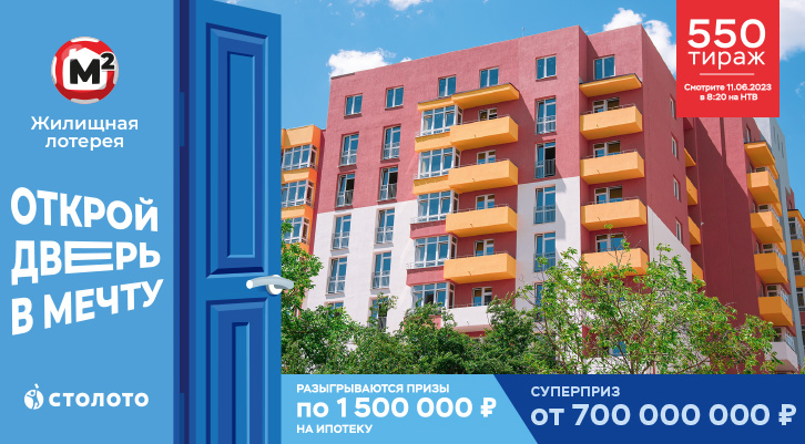В ближайшие выходные состоится праздничный тираж «Жилищной лотереи» ко Дню России. Разыграем призы по 1 500 000 рублей на ипотеку и множество других денежных призов. Также вас ждёт суперприз 700 000 000 рублей. Вперёд, выбирать счастливый билет!