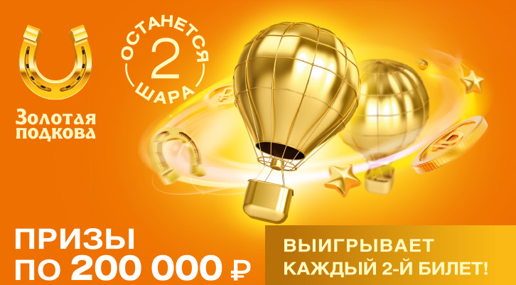 В «Золотой подкове» всегда интересно! В ближайшем розыгрыше вас ждут суперприз 10 000 000 ₽, призы по 200 000 ₽ и множество других денежных призов. В тираже останется два шара — выигрывает каждый второй билет. Пусть удача будет на вашей стороне!