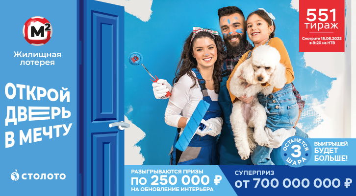 Лето в «Жилищной лотерее» продолжается! Не упустите суперприз 700 000 000 рублей и призы по 250 000 рублей на обновление интерьера. Останется 3 шара — выигрышей будет больше. Скорее за счастливыми билетами!