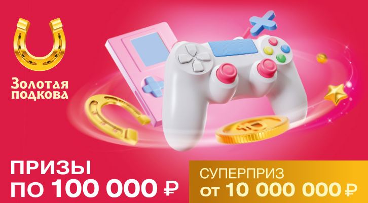 Какие планы на выходные? Испытайте удачу в «Золотой подкове»! В этом тираже вас ждут призы по 100 000 ₽. И не забудьте про суперприз — можно выиграть от 10 000 000 ₽. Играйте и выигрывайте!