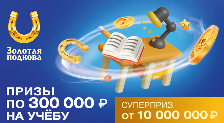 С «Золотой подковой» скучно не бывает! В ближайшем тираже вас ждут суперприз от 10 000 000 ₽, призы по 300 000 ₽ на учёбу и тысячи других денежных призов. Победителей всегда много, не упустите шанс войти в их число!