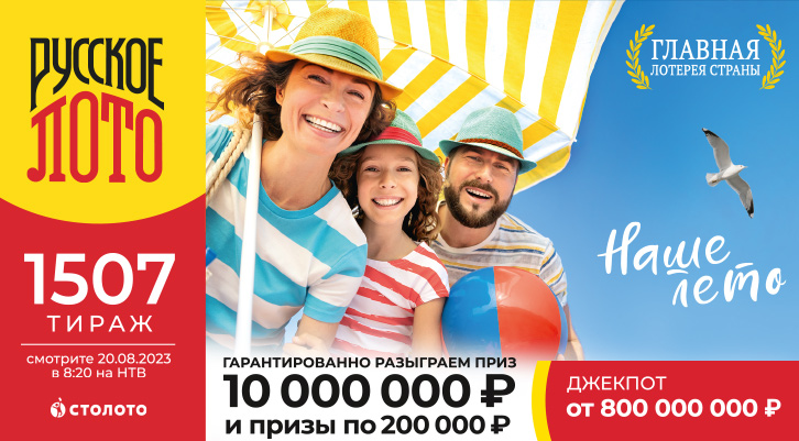 Билеты на ближайший тираж продаются на stoloto.ru до 17:20 мск субботы, 19 августа.