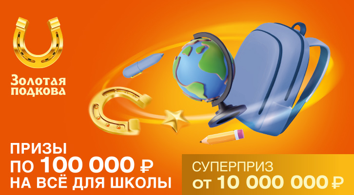 Сделайте выходные незабываемыми — испытайте удачу в «Золотой подкове»! В ближайшем тираже разыгрываем суперприз от 10 000 000 рублей, призы по 100 000 рублей на всё для школы и тысячи других денежных призов. Ловите счастливый шанс!