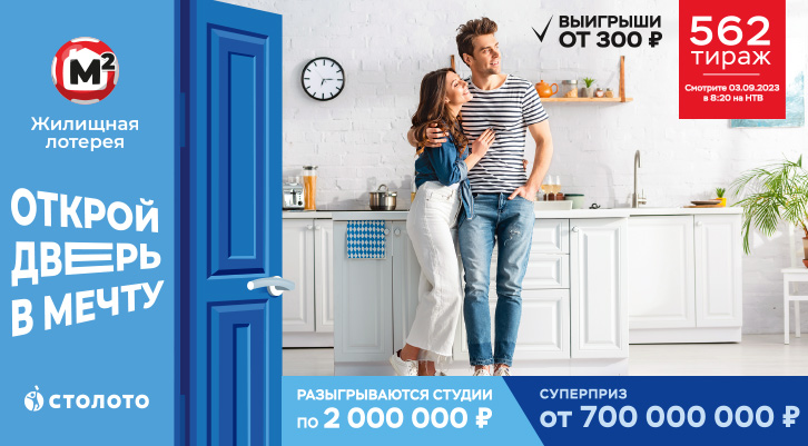«Жилищная лотерея» объявляет квартирный марафон. Весь сентябрь разыгрываем студии по 2 000 000 рублей. Суперприз — 700 000 000 рублей. В ближайшем тираже вас ждут первые студии и много денежных призов. А ещё минимальные выигрыши будут в 2 раза больше ― от 300 рублей. Такой шанс нельзя упустить. Скорее за билетами!