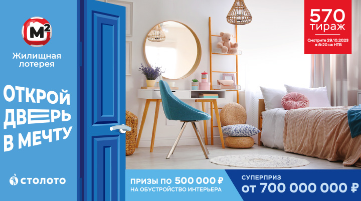 Создаём уют в ваших домах вместе с «Жилищной лотереей». Ведь в 570-м тираже вас ждут суперприз 700 000 000 ₽, призы по 500 000 ₽ на обустройство интерьера и множество других денежных призов.