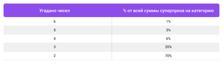 Как будет распределён суперприз по категориям, смотрите в таблице: