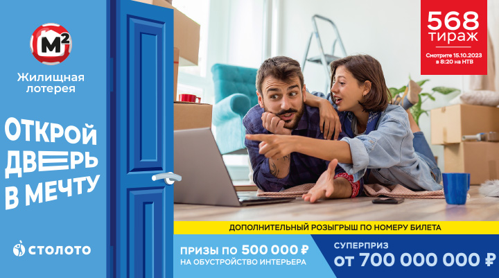 Проведите осень с «Жилищной лотереей»! В 568-м тираже вас ждут суперприз 700 000 000 рублей и призы по 500 000 рублей на обустройство интерьера. Ещё проведём дополнительный розыгрыш по номеру билета. Это значит, что шансов на победу будет больше.