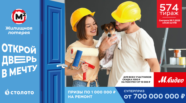 С «Жилищной лотереей» скучно не бывает. Ведь в 574-м тираже вас ждут суперприз 700 000 000 ₽, призы по 1 000 000 ₽ на ремонт и множество других денежных призов. Ловите счастливый момент!