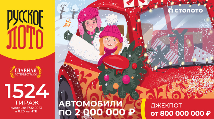 Билеты на этот тираж в продаже до 17:20 мск 16 декабря. Трансляцию смотрите 17 декабря в 8:20 в программе «У нас выигрывают!» на НТВ.