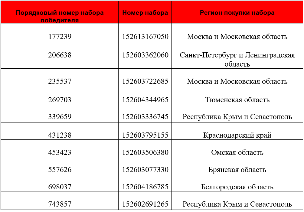 Удача оказалась на стороне участников со следующими номерами конвертов: