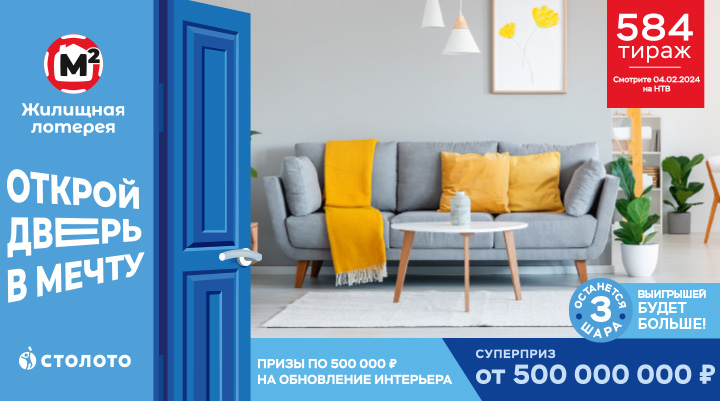 В «Жилищной лотерее»: суперприз 500 000 000 ₽ и призы по 500 000 ₽ на обновление интерьера