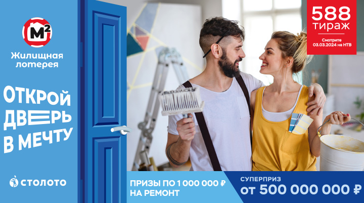 «Жилищная лотерея» приготовила много интересного в ближайшем розыгрыше. Вас ждут суперприз 500 000 000 ₽, призы по 1 000 000 ₽ на ремонт и множество других денежных призов. Покупайте билеты, пусть вам крупно повезёт!