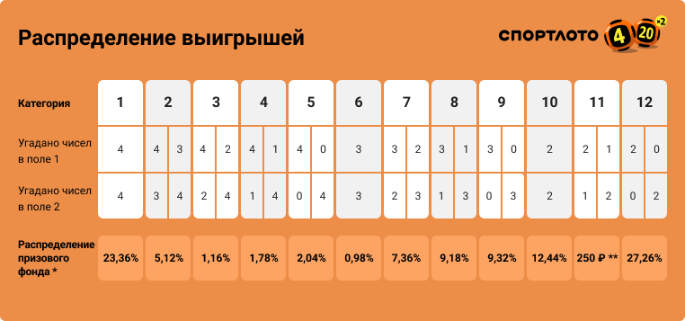 Начинаем весну с позитивных новостей. Вернули цену 250 рублей в «Спортлото «4 из 20». Суперприз по-прежнему от 100 000 000 рублей, самое время сделать его своим!