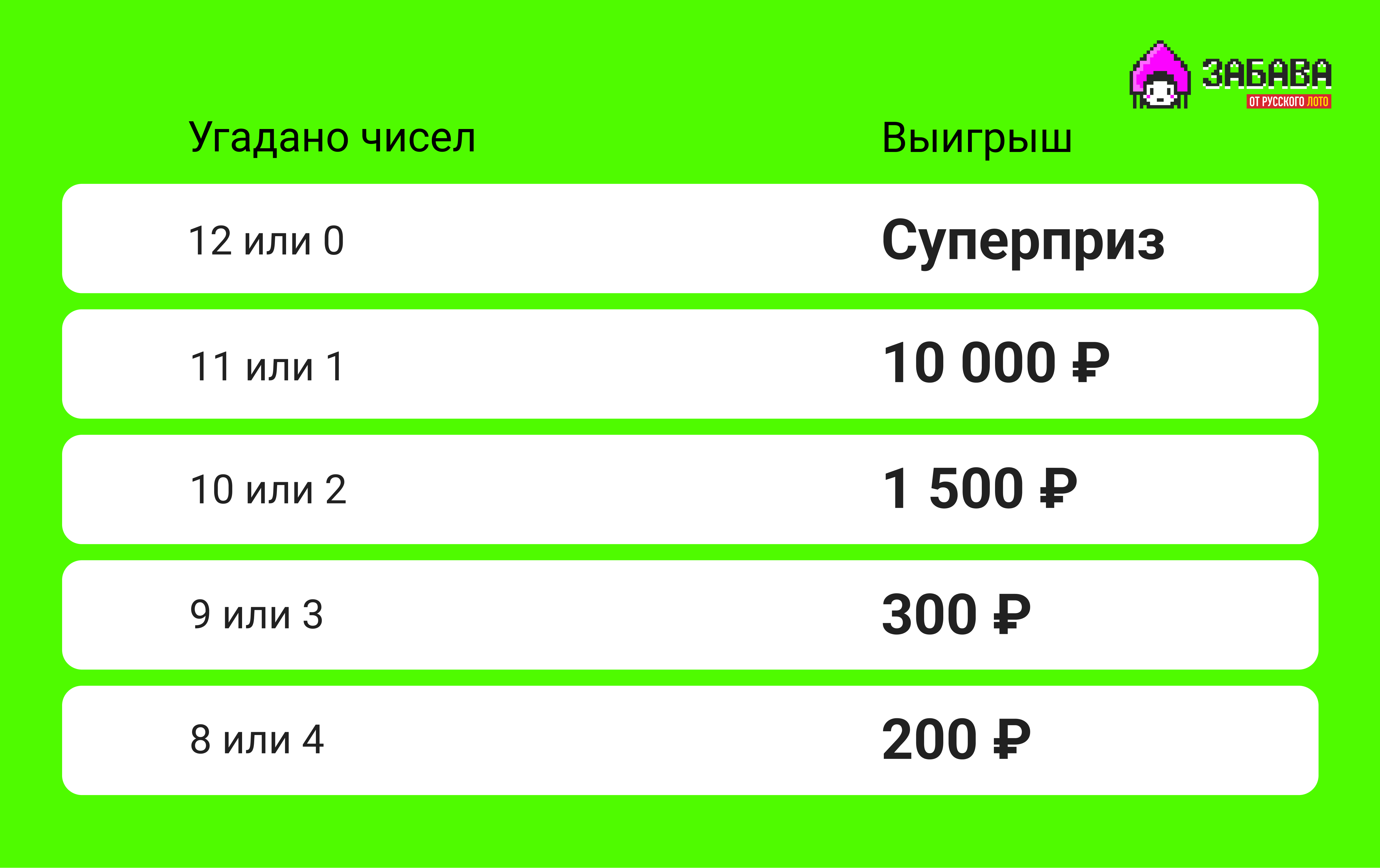 Минимальные выигрыши в 2 раза больше в «Забаве от Русского лото»
