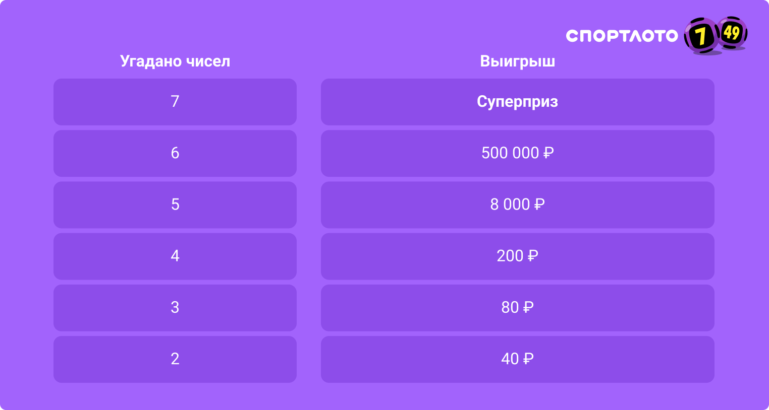 Ежедневно разыгрываем 500 000 ₽ в «Спортлото «7 из 49»
