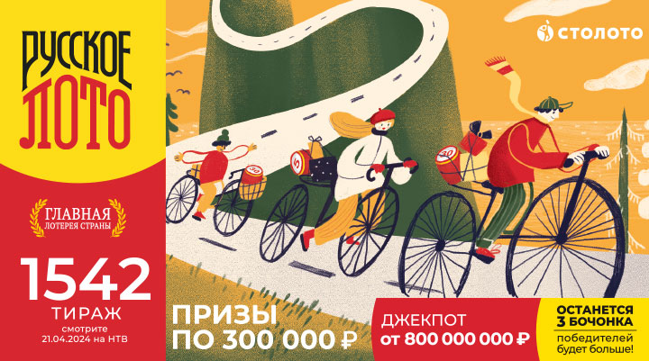 Разыгрываем призы по 300 000 ₽ и Джекпот 800 000 000 ₽ в «Русском лото»