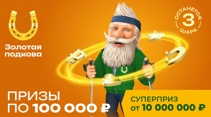 Откройте спортивный сезон на свежем воздухе вместе с «Золотой подковой». В ближайшие выходные разыгрываем суперприз от 10 000 000 ₽, призы по 100 000 ₽ и множество других денежных призов. В тираже выигрывает каждый 3-й билет. Испытайте удачу!