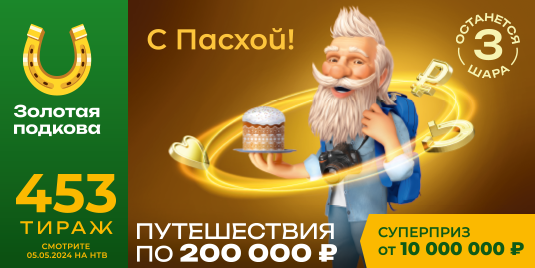 Билеты продаются на stoloto.ru до 15:50 мск субботы, 4 мая. Трансляцию смотрите 5 мая в 8:20 в программе «У нас выигрывают!» на НТВ.