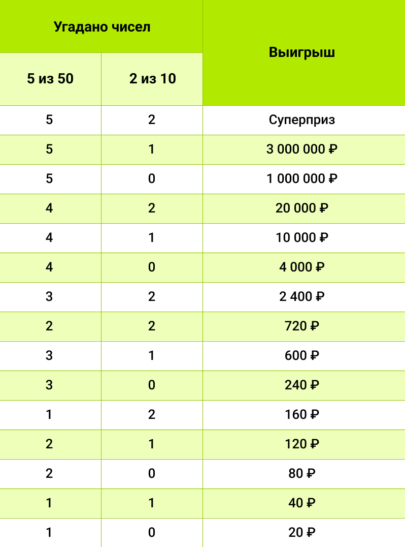 Изменения вступят в силу с тиража, розыгрыш которого состоится 3 июня в 09:30 мск. Информацию о выигрышах смотрите в таблице: