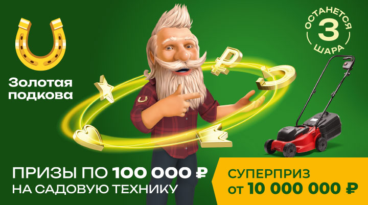Хотите сделать грядущие выходные особенными? Тогда участвуйте в ближайшем тираже «Золотой подковы». Вас ждут суперприз от 10 000 000 ₽, денежные призы на покупку садовой техники по 100 000 ₽ и другие денежные призы. Останется 3 шара, выигрывает каждый 3-й билет. Пусть удача будет на вашей стороне!
