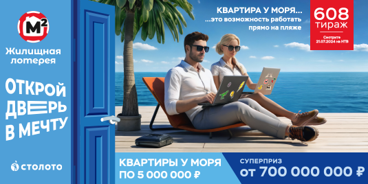 Скоро отпуск, а вы не успели забронировать отель? И не надо! Лучше выиграйте квартиру у моря и отдыхайте с комфортом! В ближайшие выходные в «Жилищной лотерее» вас ждут квартиры у моря по 5 000 000 ₽ и суперприз 700 000 000 ₽. Скорее за билетами!