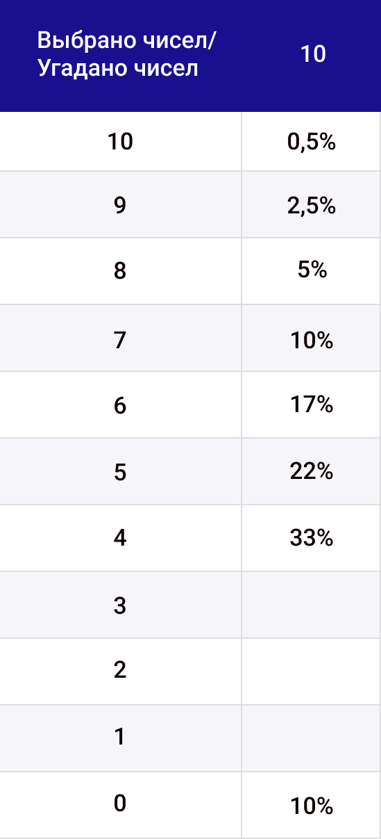 Подробности о распределении накопленного суперприза по категориям выигрышей смотрите в таблице: