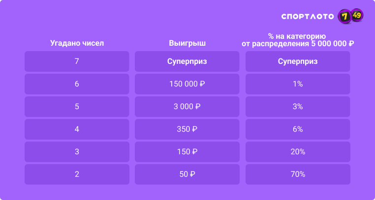 7 дней подряд распределяем по 5 000 000 ₽ в «Спортлото «7 из 49»