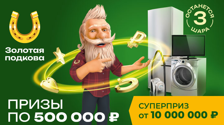 На что бы вы потратили полмиллиона? А больше? Скорее загадайте самые заветные желания и покупайте билеты «Золотой подковы»! В первые августовские выходные разыграем призы по 500 000 ₽, суперприз от 10 000 000 ₽ и много других денежных призов. Выигрывает каждый 3-й билет. Присоединяйтесь к счастливчикам!