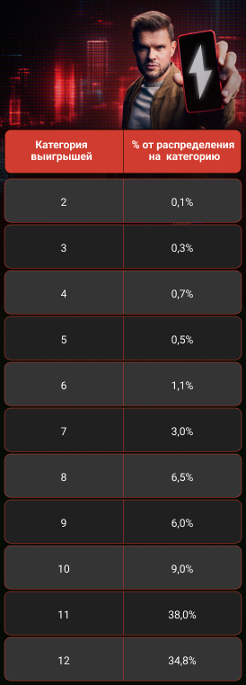 Подробности о распределении накопленного суперприза по категориям выигрышей смотрите в таблице:
