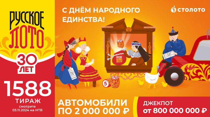 Билеты на тираж № 1588 продаются на stoloto.ru до 17:20 мск субботы, 2 ноября. Трансляцию смотрите 3 ноября в 8:20 в программе «У нас выигрывают!» на НТВ.