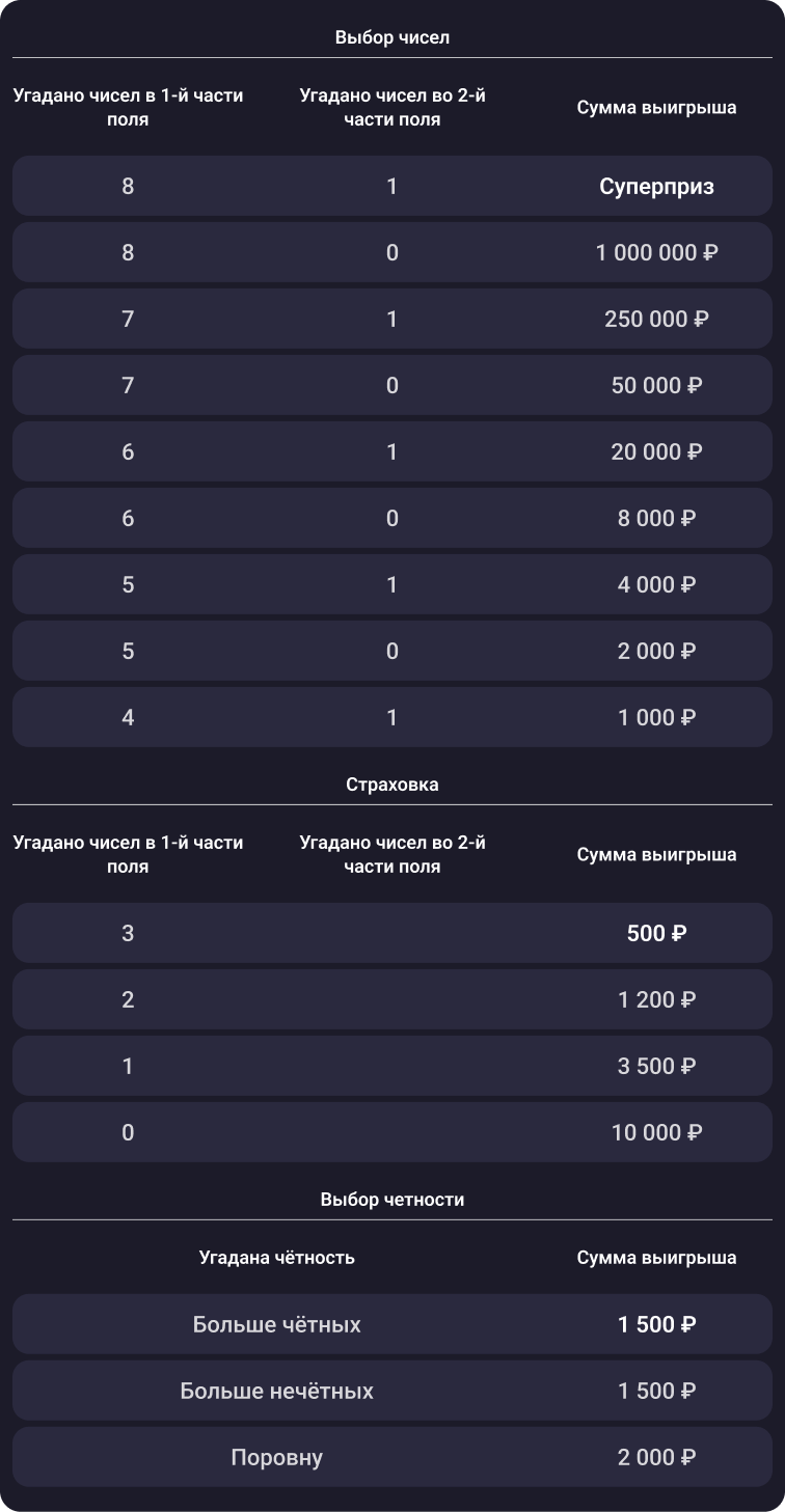 Полную информацию об изменении выигрышей смотрите в таблице: