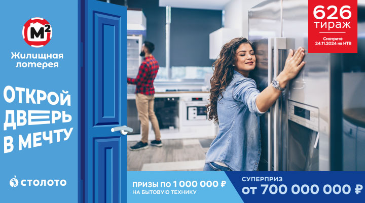 Как здорово, что есть современная бытовая техника, которая облегчает нам жизнь. С «Жилищной лотереей» помощников в вашем доме может стать больше. В ближайшие выходные разыграем призы по 1 000 000 ₽ на покупку бытовой техники и много других денежных призов. Есть шанс и на суперприз от 700 000 000 ₽. Ловите момент!