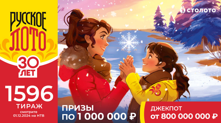 Билеты на тираж № 1596 продаются на stoloto.ru до 17:20 мск субботы, 30 ноября. Трансляцию смотрите 1 декабря в 8:20 в программе «У нас выигрывают!» на НТВ.