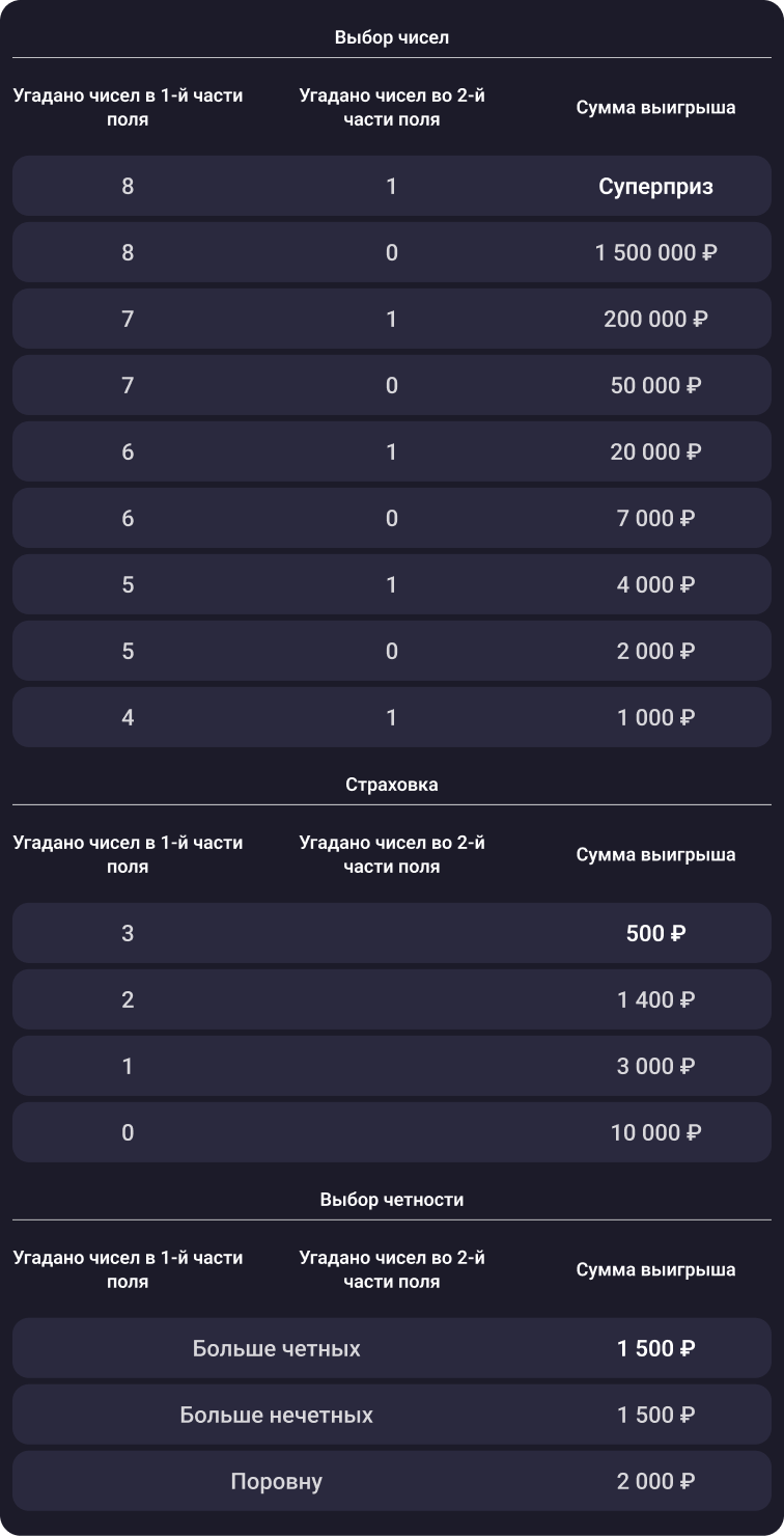 С 11 декабря изменилась цена билета в лотерее «Рапидо Про» — теперь от 1000 ₽. Выигрыши стали больше. Угадайте 9 чисел и заберите суперприз от 7 000 000 ₽. Самое время сыграть!