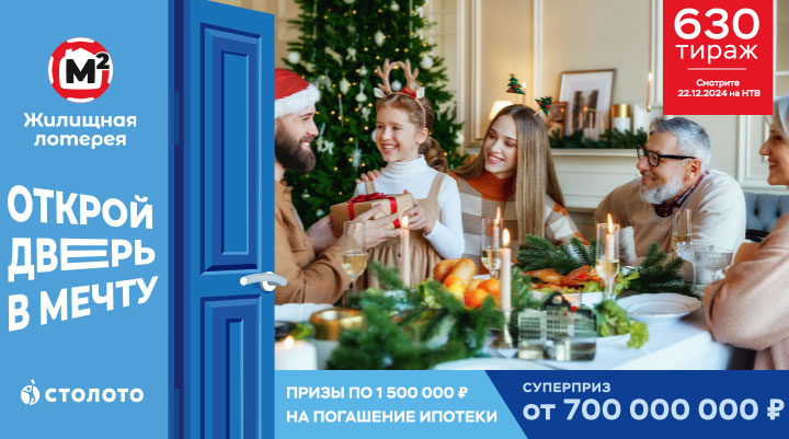 Последний раз в этом году разыгрываем призы по 1 500 000 ₽ на погашение ипотеки! А ещё в «Жилищной лотерее» суперприз от 700 000 000 ₽. Успейте забрать до Нового года!