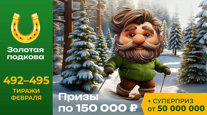 В ближайшие выходные вас ждут призы по 150 000 ₽ в «Золотой подкове». Ещё вы можете выиграть суперприз 50 000 000 ₽ и другие денежные призы. Пусть февраль принесёт вам удачу и крупную победу!