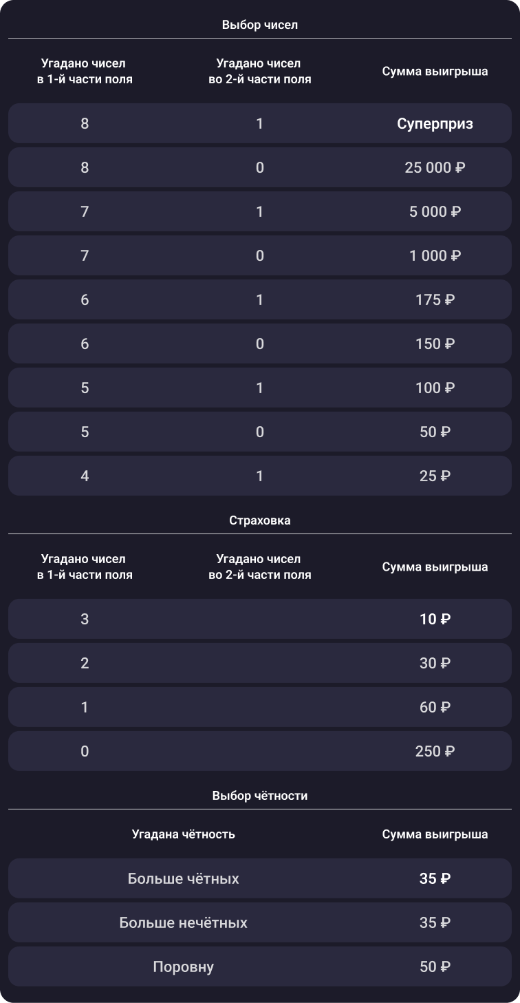 Как изменятся выигрыши, смотрите в таблице: