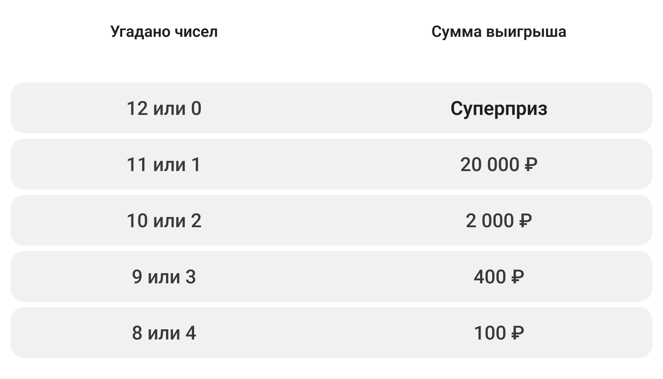 Полную информацию об изменении выигрышей смотрите в таблице: