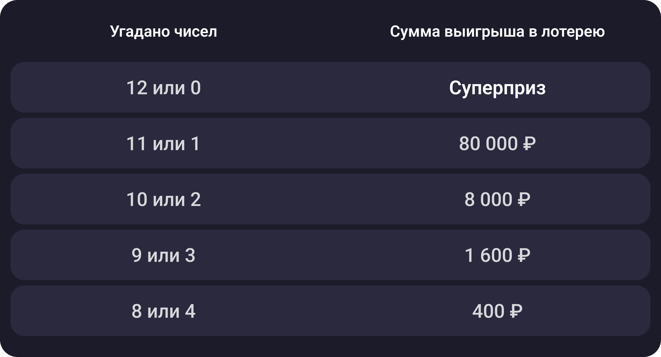 С 27 марта цена билета во «Всё или ничего» от 400 ₽. Суперприз лотереи от 10 000 000 ₽. Вы сможете забрать его, даже ничего не угадав. За дело!