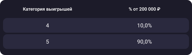 Как разыгрываются 200 000 ₽ в категориях выигрышей, смотрите в таблице.