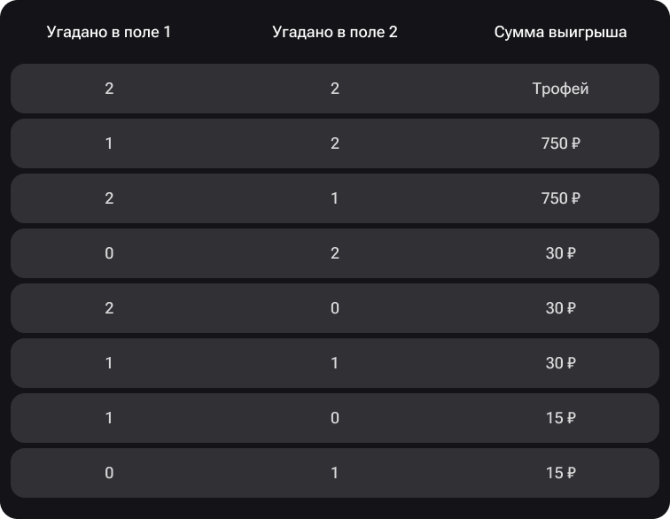 Смотрите в таблице, как изменятся выигрыши.