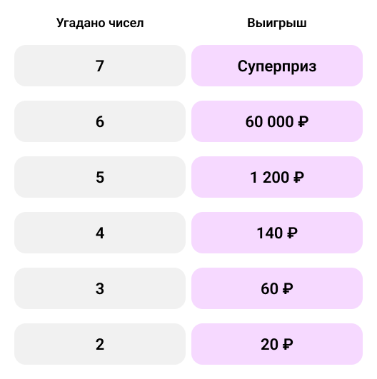Самое время испытать удачу! В «Спортлото «7 из 49» с 7 апреля билеты всего от 20 ₽, а суперприз от 50 000 000 ₽. Акция действует только до 14 апреля. Купите больше билетов — повысьте шансы на выигрыш!